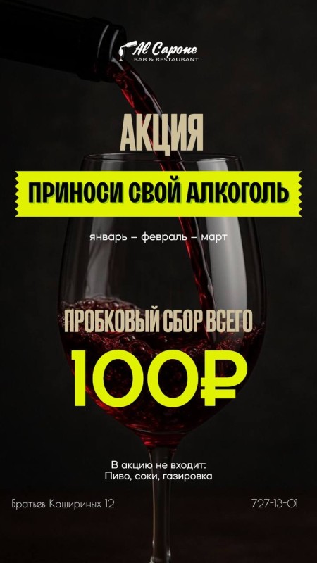 ПРИНОСИТЕ ЛЮБЫЕ КРЕПКИЕ НАПИТКИ С СОБОЙ! РАЗРЕШАЕМ СО СВОИМ - ПРОБКОВЫЙ СБОР -100 руб. , ПРИНОСИ СВОЙ АЛКОГОЛЬ В АЛЬ КАПОНЕ ЧЕЛЯБИНСК